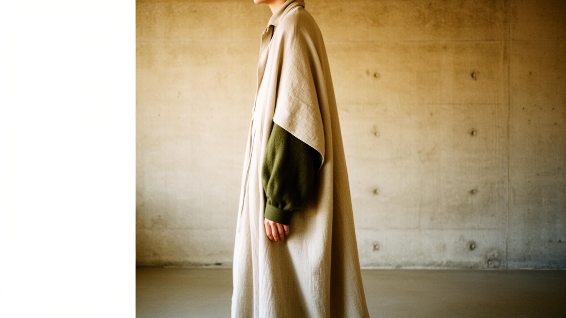 The first edition documents stillness as a form of motion. Long lines, undyed cloth, and a single deep-olive thread that binds the work.